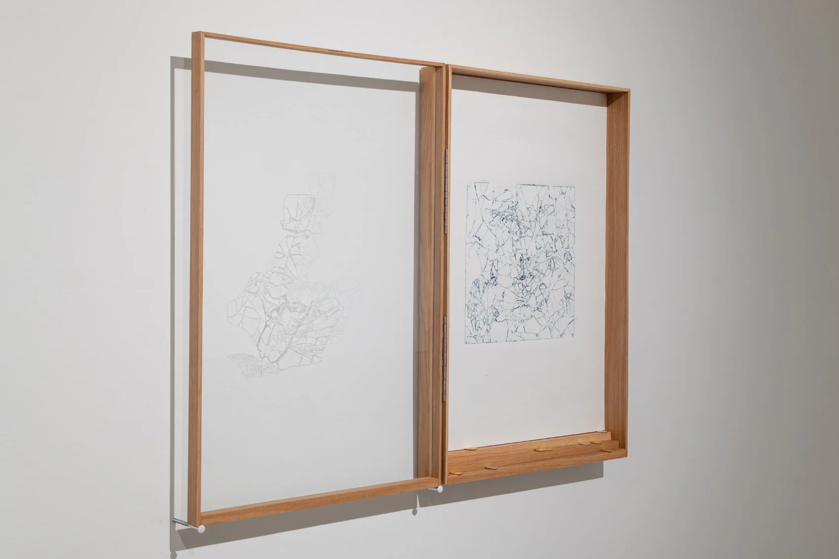 Anatomy of a Broken Divinity 1 and 2, 2024Vitreograph, glass, oak frame 13.5 x 13.5 x 8.5 in (34.3 x 34.3 x 21.6 cm)
